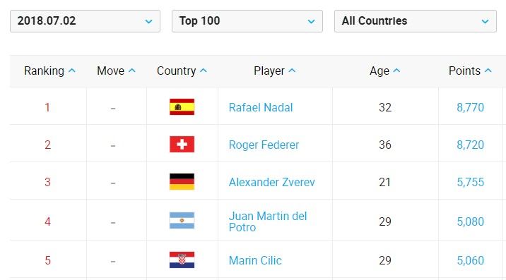 フェデラー・ナダルの1位争いがアツい ポイント差はたったの50!