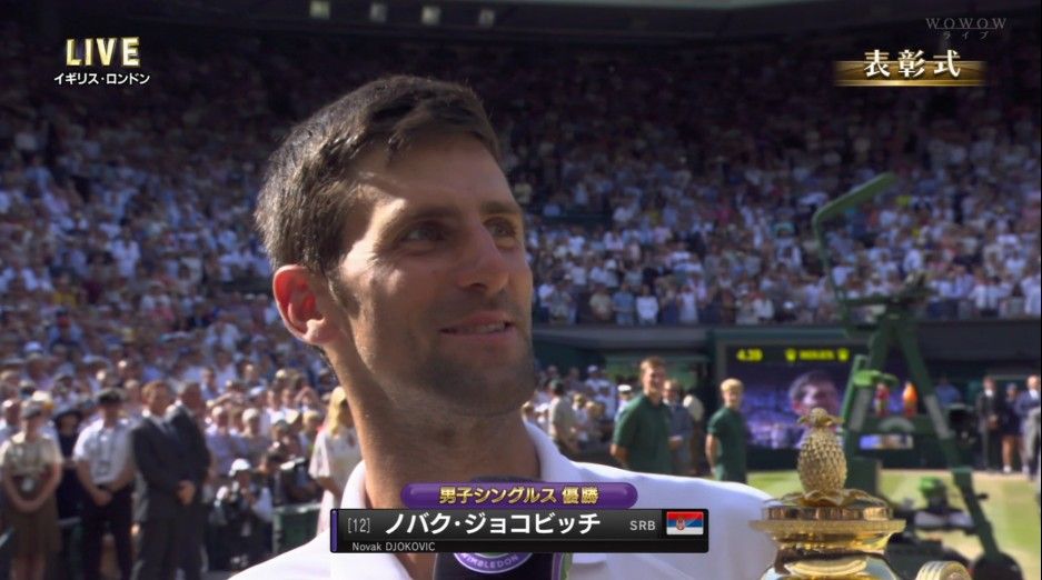 過去2回の優勝時と同じく、芝を食べるパフォーマンスを披露。「今年は芝を二口食べた。我慢できなかった」と会心の笑みを浮かべた。ジョコ、芝を二口食べる「我慢できなかった」/ウィンブルドン