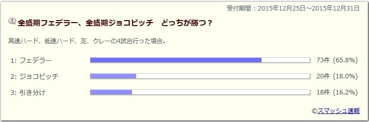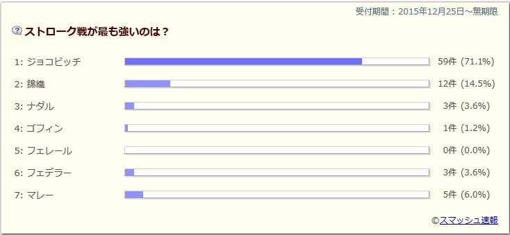 錦織ツアーファイナルのフェデラー戦を見て、現時点でストロークのトップは間違いなくこの二人だと確信しました。錦織選手を選んだのは、バックハンドで高い打点も苦にしない点を評価しました。ジョコビッチ鉄壁
