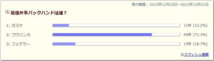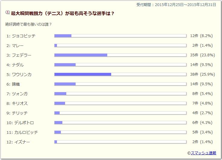 ワウリンカそのおかげで、このランキングポジションにいるのでは、って思う位。ある意味最強。ワウリンカ最高はフェデラー、最強はワウリンカワウリンカ全仏決勝を見たら票を入れざるをえない