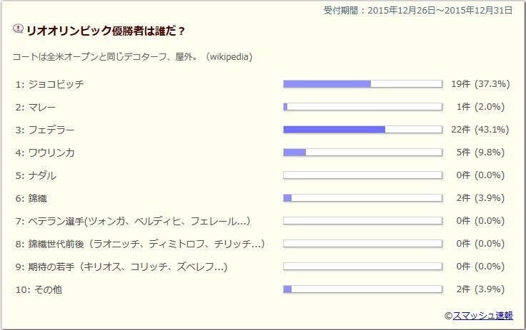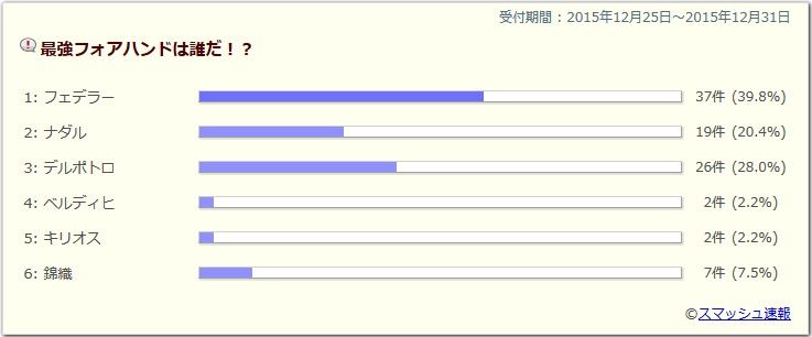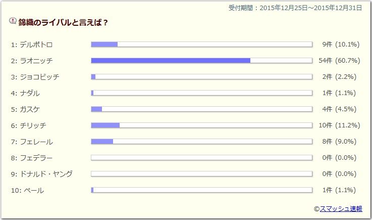 錦織はもちろん、フェデラー、ワウリンカが特に人気でしたね!どの選手も来季は頑張って欲しいです!