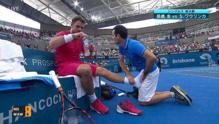 錦織試合前、ベンチで腕揉んでたよね。違和感あるのかな?