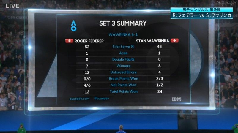 おじさん勝ったのは嬉しいけどワウリンカ可哀想なくらいアウェーだったな