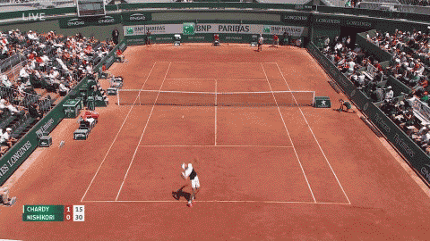 錦織といえば相手のセカンドに対してはサービスライン近くまで出てからの