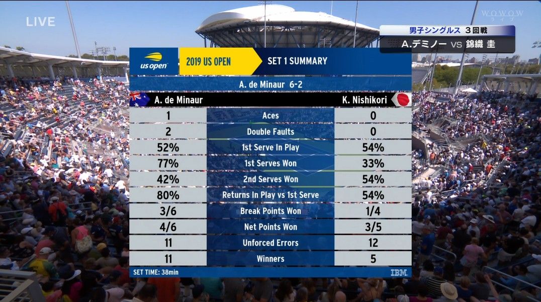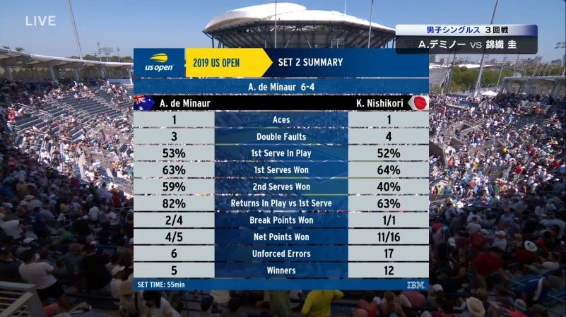 このサーフェスで錦織の攻撃力とデミノーの守備力だと
