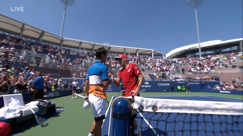 今回は試合終了後すぐに審判に向かって握手したあと相手コートにいって握手