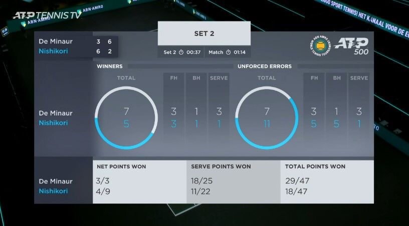 錦織のタイポイントゲームはキャリア4回目にして4勝目。