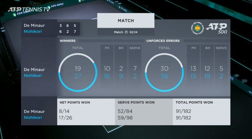 なお今までのフルセット試合が182試合もあったため勝っても0.15パーしか勝率が上がらなかった模様