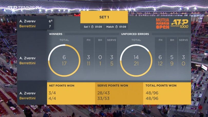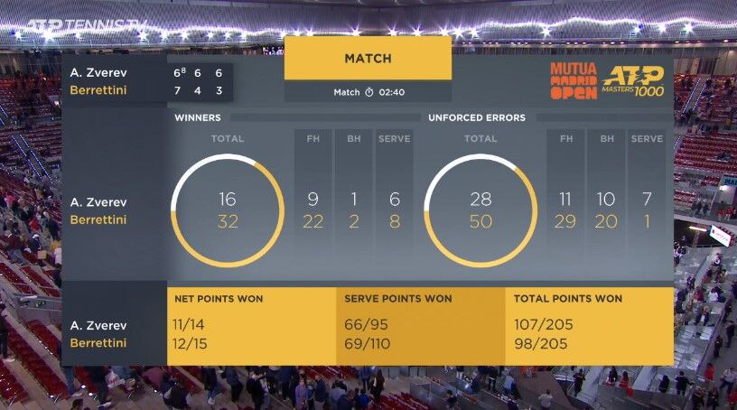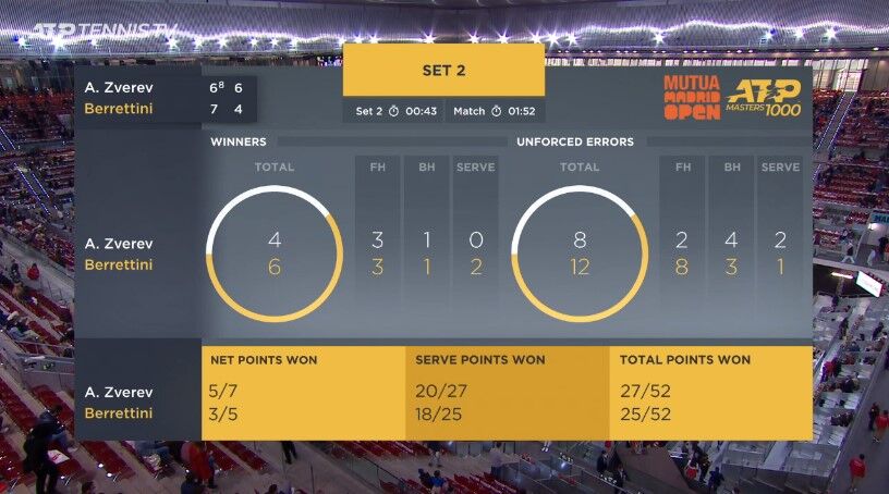 ズベレフおめ、ベレッティーニ乙