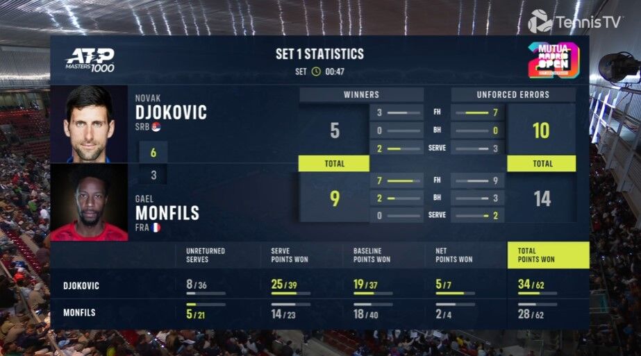 ジョコ18連勝おめでとう。モンフィスお疲れ様