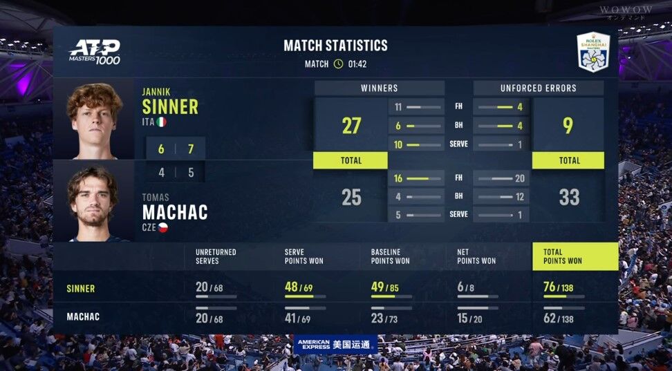 シナーおめ、マハチおつ。タイブレ行くかと思ったが
