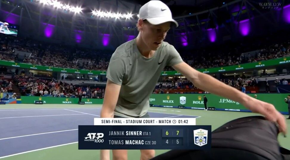マハチ、ラケット交換でシナーに確認してもらった?w