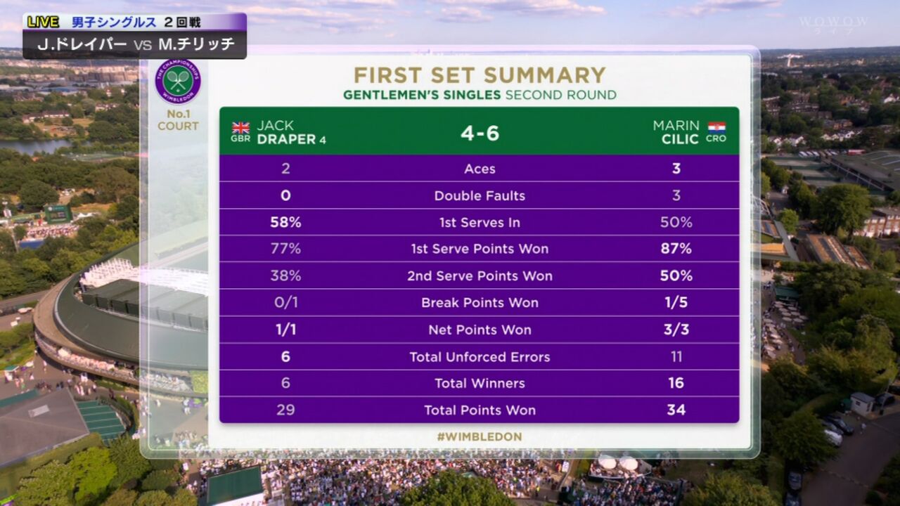 チリッチ身体がよく動いててドレイパー相手に全く引けをとらないラリーしてるな