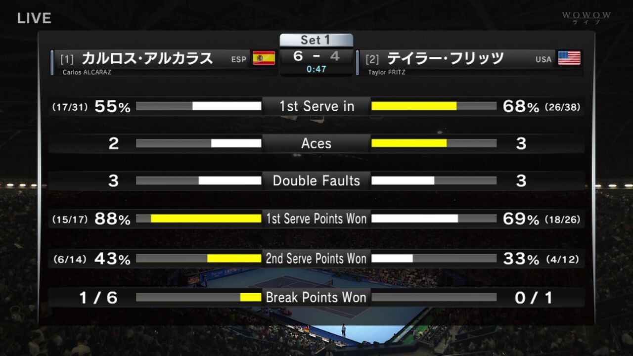 (1)アルカラス vs (2)フリッツ、ウォークオン