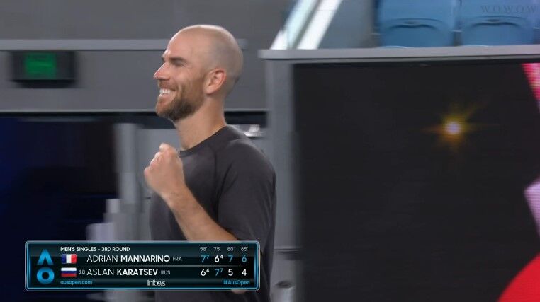 マナリノがカラツェフとの4時間半の死闘制し全豪ベスト16へ!!次はナダルとのハゲしい左利き対決!!