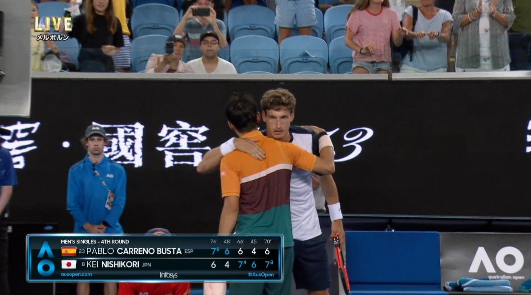 【死闘】錦織、カレーニョブスタとの5時間マラソンマッチ制し、全豪ベスト8進出!!前半 2019年01月21日 22:52 カテゴリ:錦織全豪オープン【オーストラリアンオープン】 コメント(100) 35: 名無しさん 2019/01/21(月) 16:04:27.18 ID:Xzxho38B0相手はどういうタイプの選手なんや?57: 名無しさん 2019/01/21(月) 16:06:16.31 ID:I0ATvYPya>>35 前の試合のソウザみたいなタイプ タグ :#テニス#錦織#カレーニョブスタ#全豪オープン2019#死闘#名試合