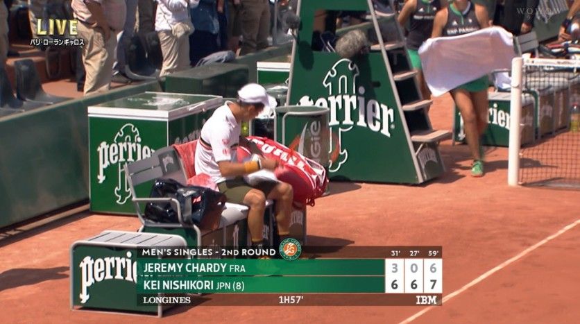 錦織、全仏3回戦へ!!シャルディを下して次はチョン・ヒョンとの日韓対決!!